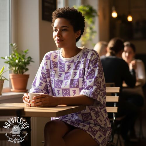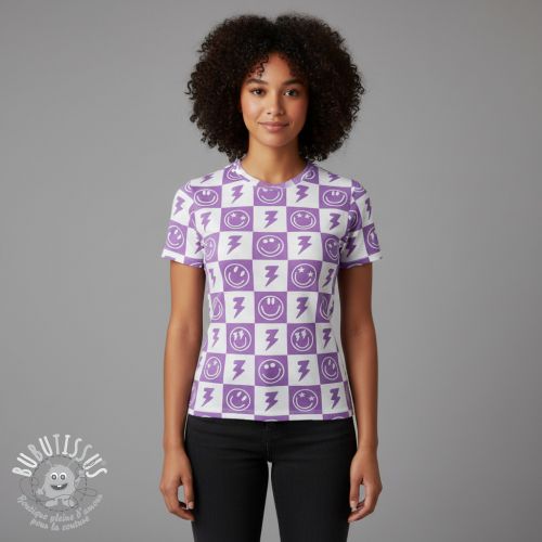 Jersey Happy faces square lavender digital print