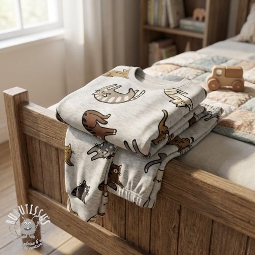Jersey Lazy cats ecru melange