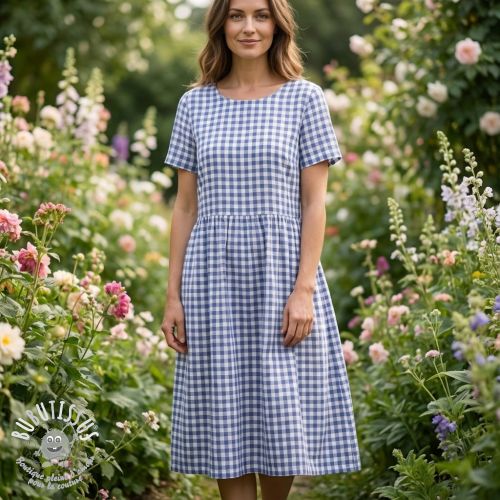 Tissu coton Check sky