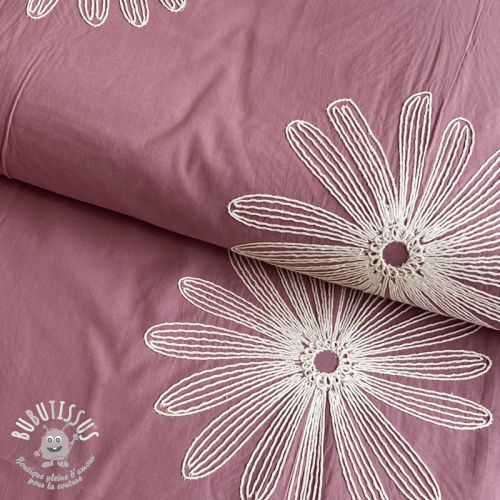 Tissu coton EMBROIDERY Flowie mauve