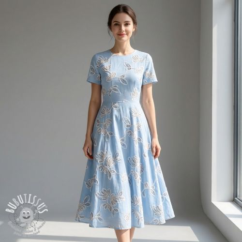 Tissu coton EMBROIDERY Loom En Light baby blue