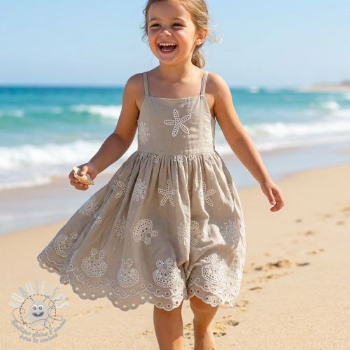 Tissu coton EMBROIDERY Sea ornaments natural