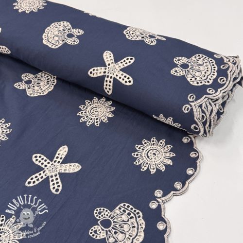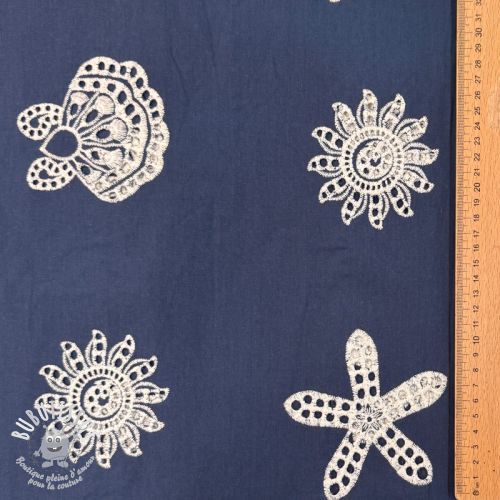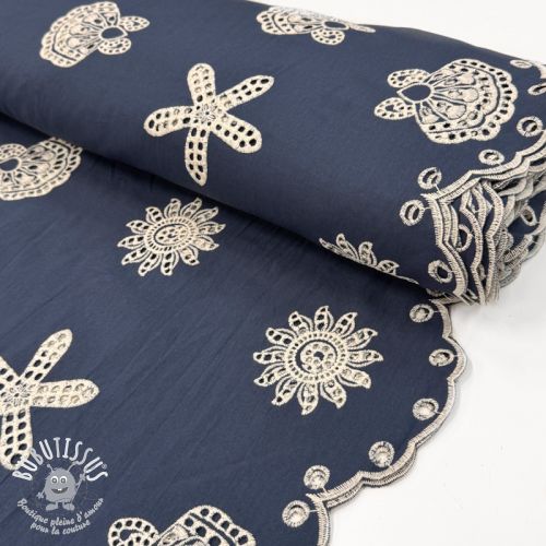Tissu coton EMBROIDERY Sea ornaments navy