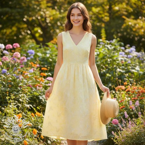 Tissu coton EMBROIDERY Tie-Dye yellow