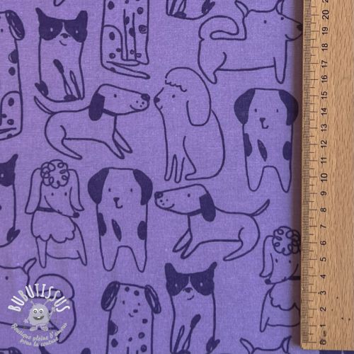 Tissu coton FLANNEL Dogs purple