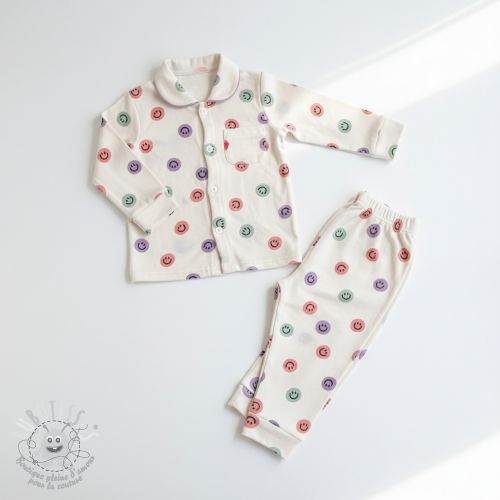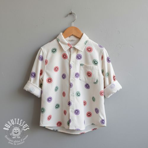 Tissu coton FLANNEL Happy faces off white lilac
