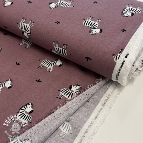 Tissu coton FLANNEL Zebras mauve