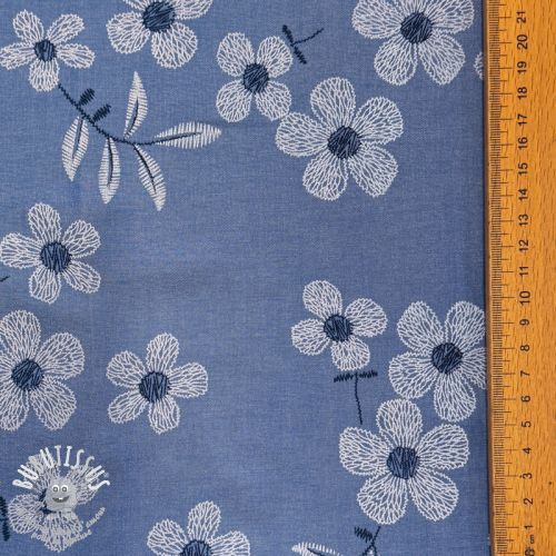 Tissu coton JEANS Chambre LUXURY JACQUARD Flowers jeans