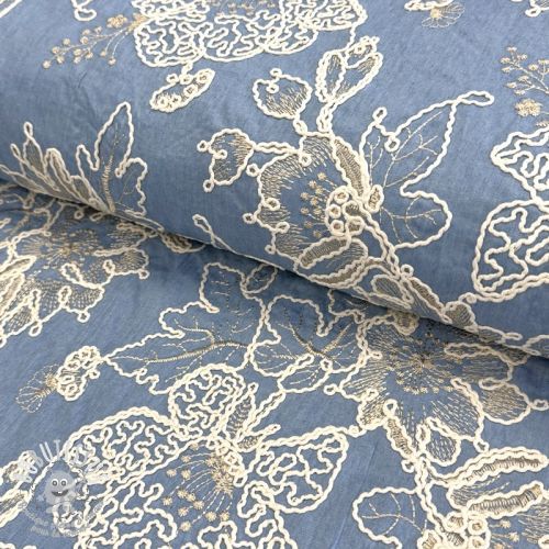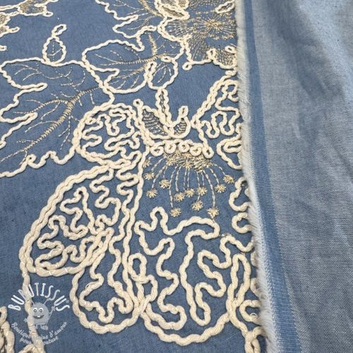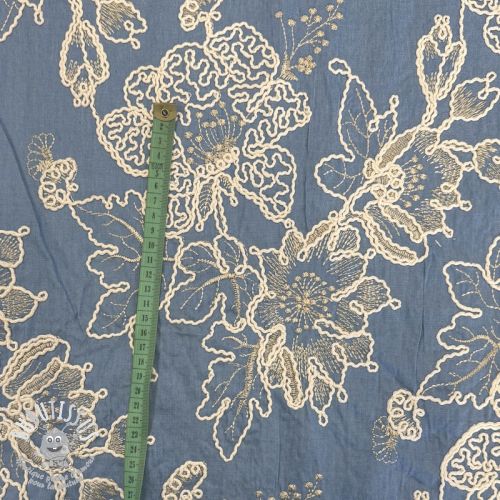 Tissu coton JEANS EMBROIDERY Bouquet light blue