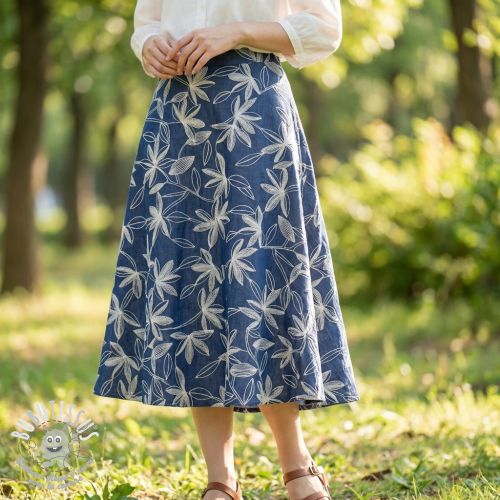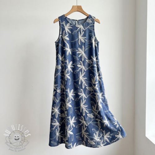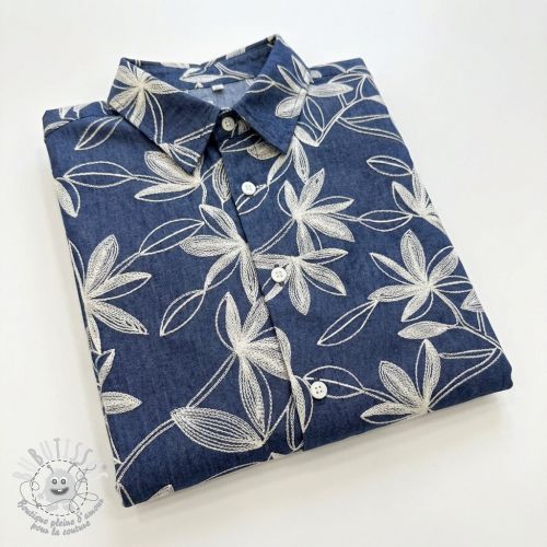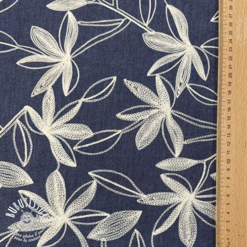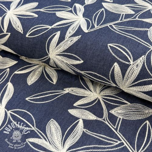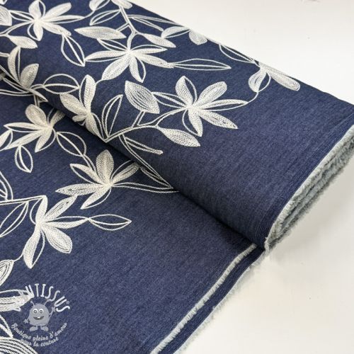 Tissu coton JEANS Embroidery Flowers white