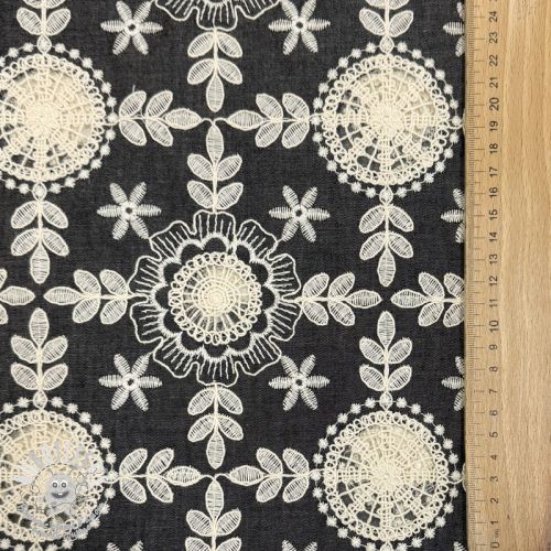 Tissu coton JEANS EMBROIDERY Niva design A