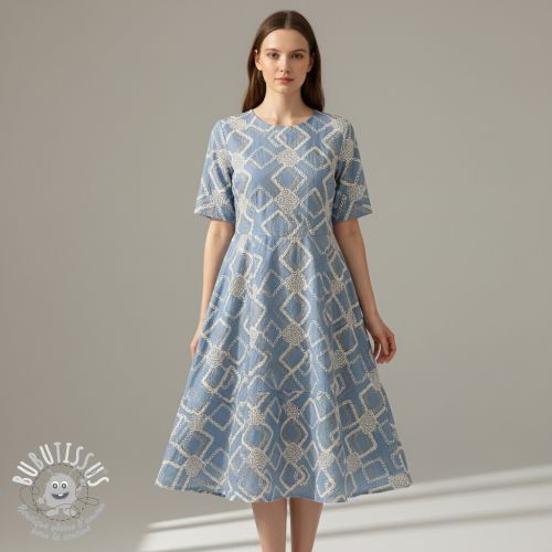 Tissu coton JEANS EMBROIDERY Square dark blue