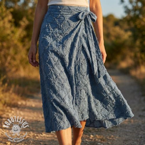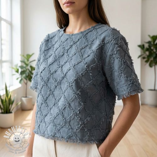 Tissu coton Lin Vintage Fringe Diamonds blue