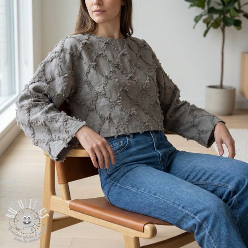Tissu coton Lin Vintage Fringe Diamonds grey
