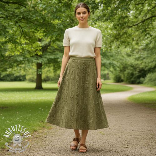 Tissu coton Lin Vintage Fringe Stripe army