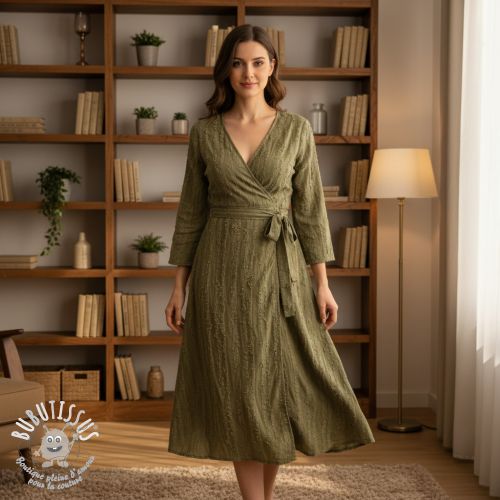 Tissu coton Lin Vintage Fringe Diamonds army