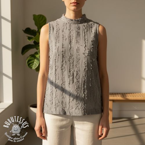 Tissu coton Lin Vintage Fringe Stripe grey