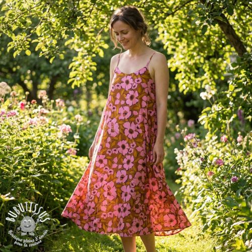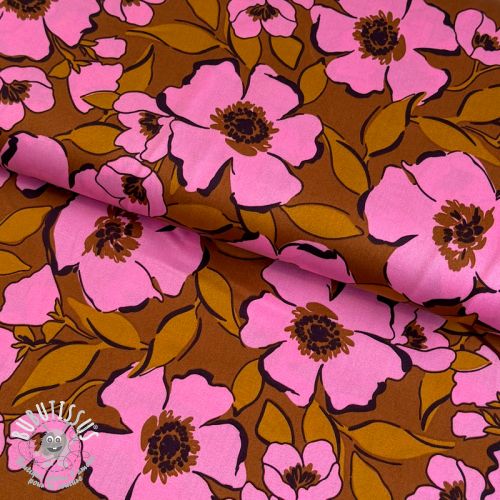 Tissu coton SATIN Flower Kala caramel
