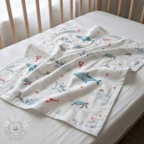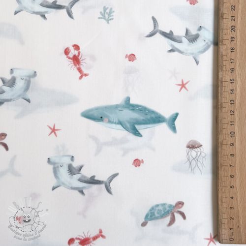 Tissu coton Sea life offwhite digital print
