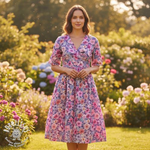 Tissu coton Significant flowers purple digital print