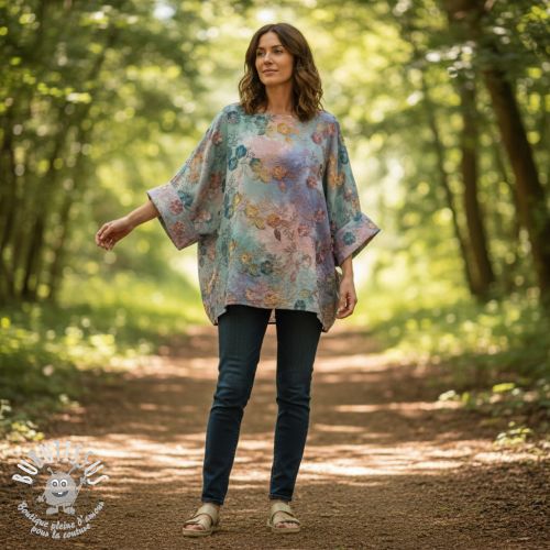 Tissu coton TIE DYE EMBROIDERY Poppy design M