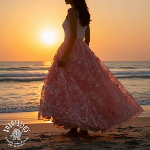 Tissu coton TIE DYE EMBROIDERY Poppy design M