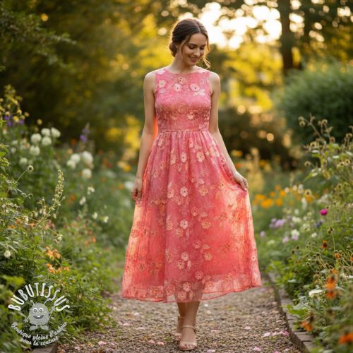 Tissu coton TIE DYE EMBROIDERY Poppy design O