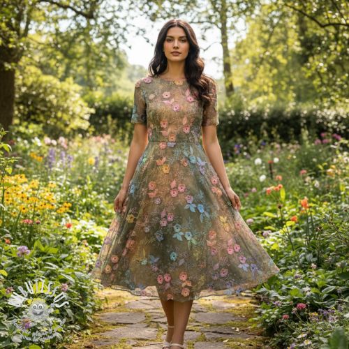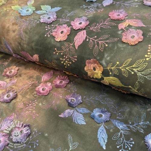 Tissu coton TIE DYE EMBROIDERY Poppy design I
