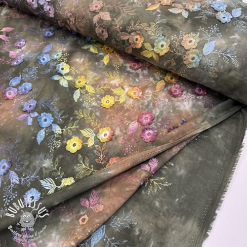 Tissu coton TIE DYE EMBROIDERY Poppy design Q