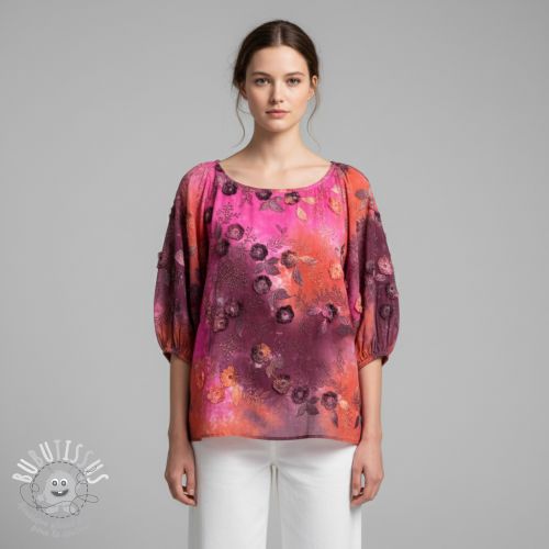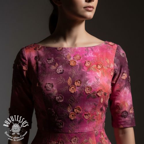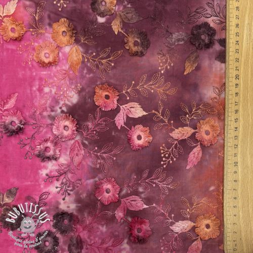 Tissu coton TIE DYE EMBROIDERY Poppy design Q