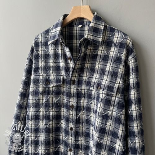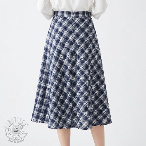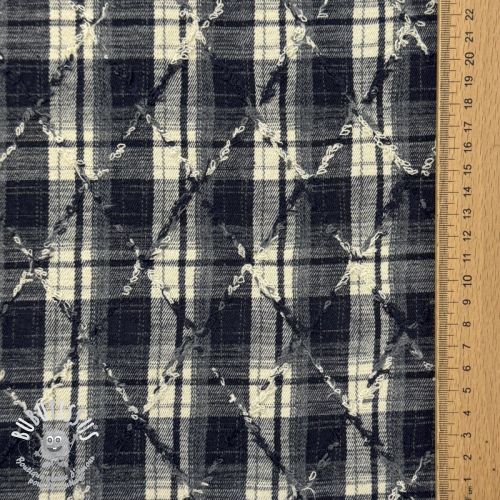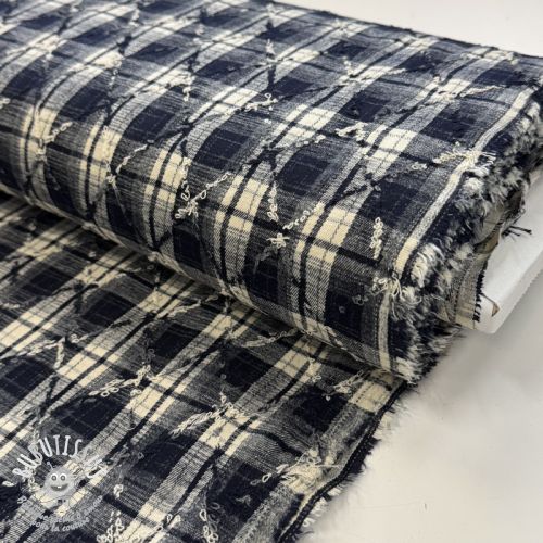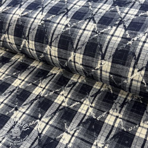 Tissu coton YARN DYED BRUSHED Check EMBROIDERY navy
