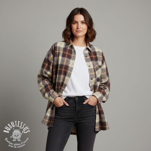 Tissu coton YARN DYED CHECK BRUSHED brown