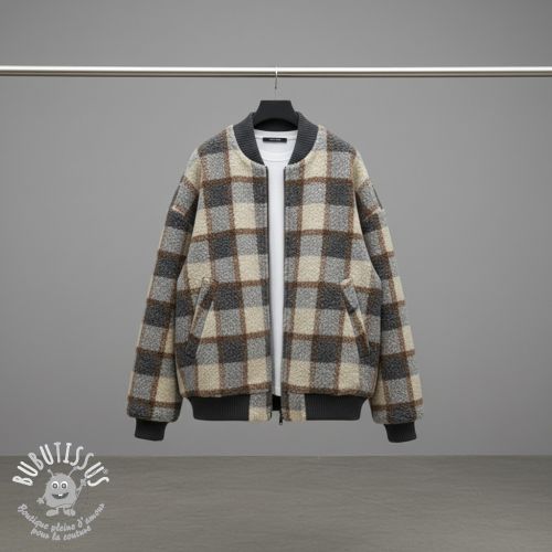 Tissu de manteau TEDDY EMBROIDERY Strawberries white