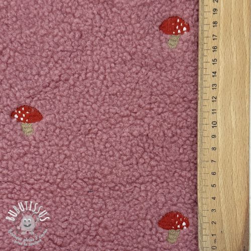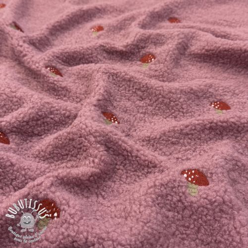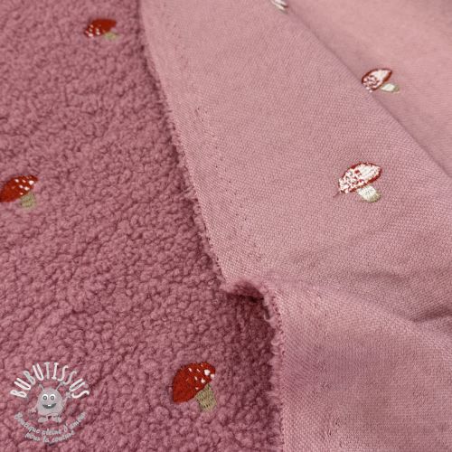 Tissu de manteau EMBROIDERY Little mushrooms old pink