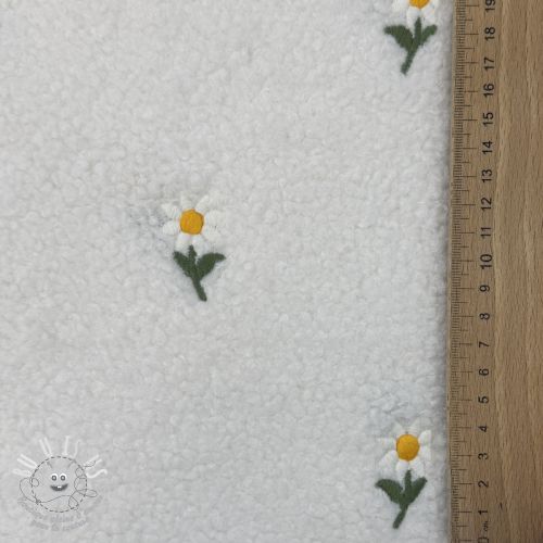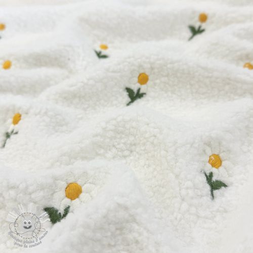 Tissu de manteau TEDDY EMBROIDERY Flowers off white