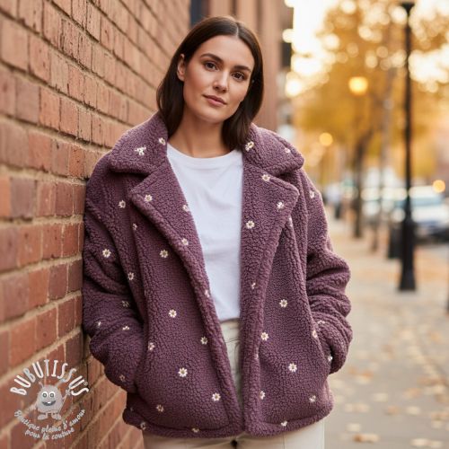 Tissu de manteau TEDDY EMBROIDERY Mini rosewood