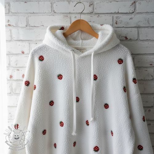 Tissu de manteau TEDDY EMBROIDERY Strawberries white