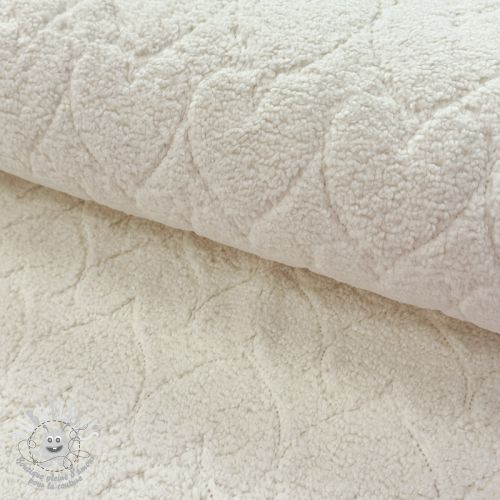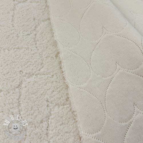 Tissu de manteau TEDDY Hearts in hearts ecru