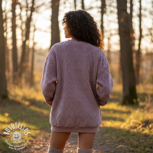 Tissu de manteau TEDDY Hearts in hearts mauve