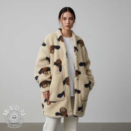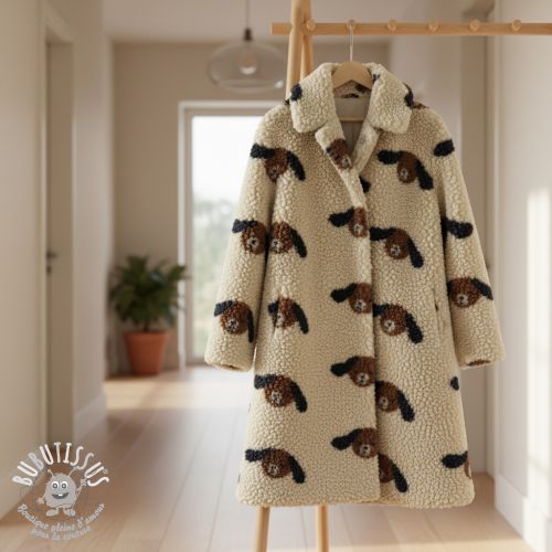 Tissu de manteau TEDDY JACQUARD Dogs brown