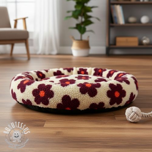 Tissu de manteau TEDDY JACQUARD Flowers beige