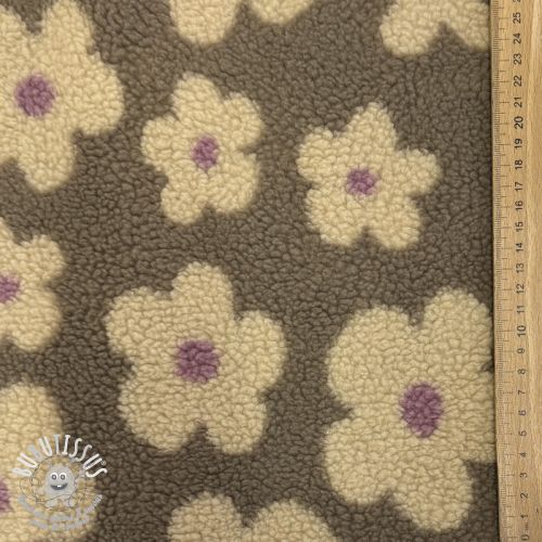 Tissu de manteau TEDDY JACQUARD Flowers taupe/beige