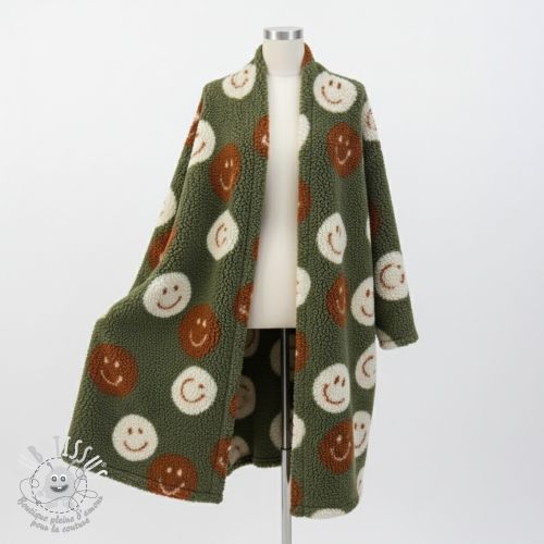Tissu de manteau TEDDY JACQUARD Happy faces green