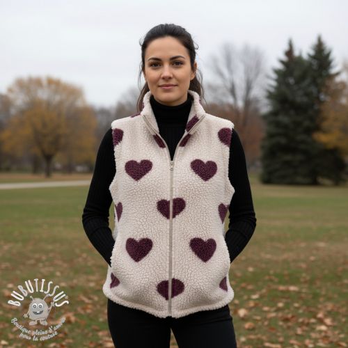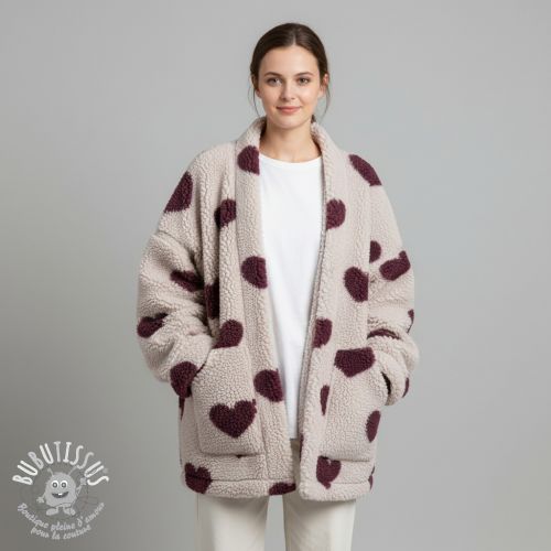 Tissu de manteau TEDDY JACQUARD Hearts rouge