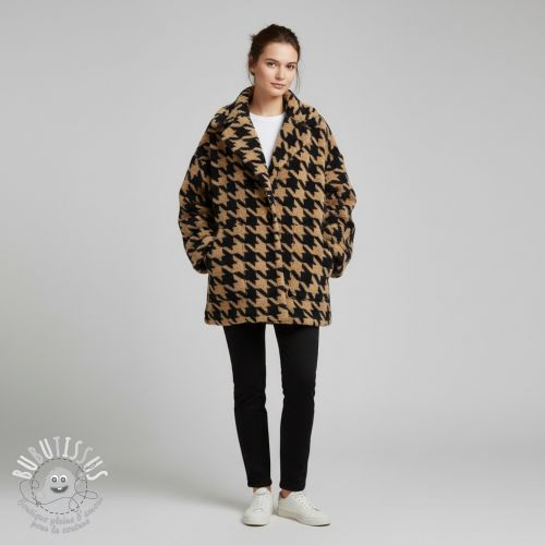 Tissu de manteau TEDDY JACQUARD PIED DE POULE camel