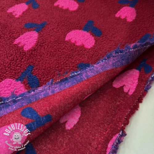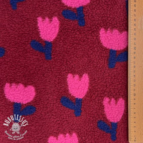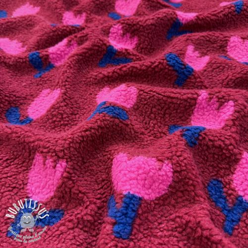 Tissu de manteau TEDDY JACQUARD Tulips dark red
