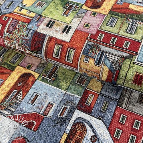 Tissu déco GOBELIN PREMIUM Happy colourful village