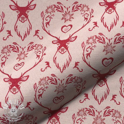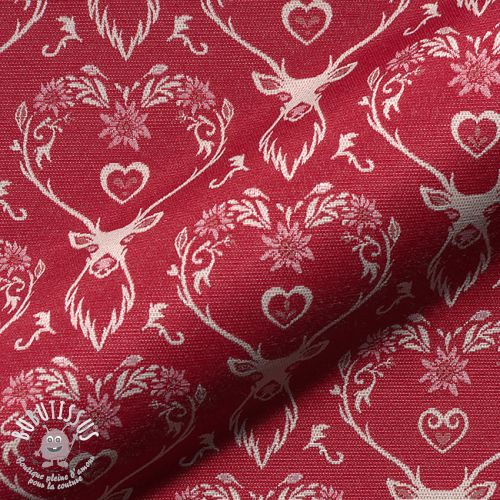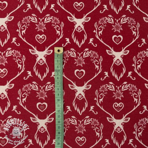 Tissu déco jacquard DOUBLE FACE Landhaus Deer Heart dark red
