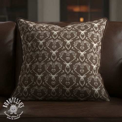Tissu déco jacquard DOUBLE FACE Landhaus Deer Heart taupe