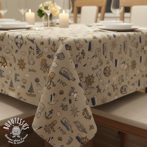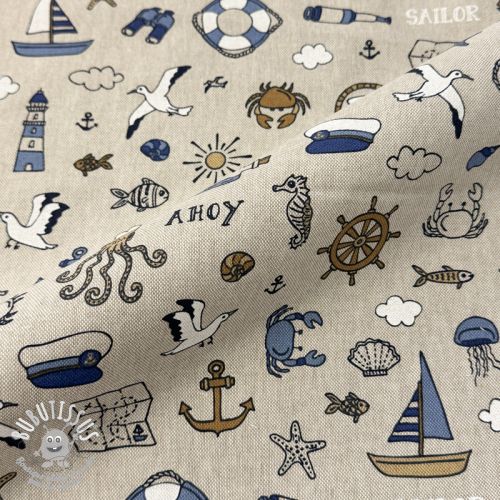Tissu déco Linenlook premium Nautical Doodle
